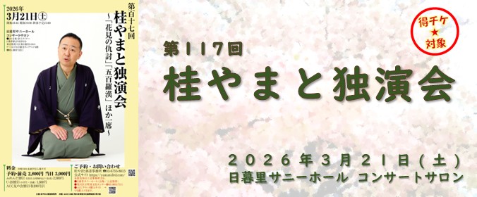 『第116回 桂やまと独演会 ~「鰍沢」「御神酒徳利」ほか一席~』 2026/2/22(日) 開演14:(...)