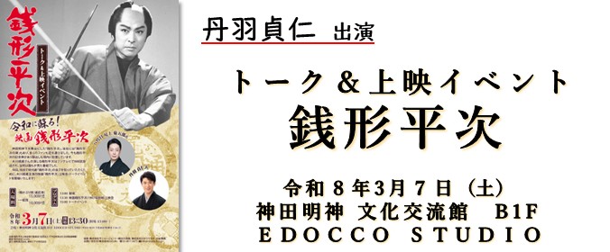 丹羽貞仁 出演 『銭形平次』トーク&上映イベント 日時: 2026年3月7日(土) 開場13:00 13:30(...)